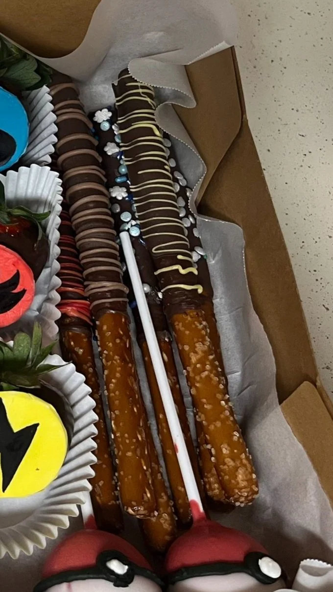 Shop › Chocolate Covered Pretzel Rods Image 1 of 1 Chocolate Covered Pretzel Rods from $3.00 Sweet and Salty, the perfect combo!!! Amount: Select Amount 2 pack 6 pack 12 pack Material: Select Material Chocolate White Chocolate Mixed Accent Color: Select Accent Color Red Pink Blue Purple None Quantity: Add To Cart Added! Sweet and Salty, the perfect combo!!! You Might Also Like Themed Valentine's Day Box from $45.00 Chocolate Covered Strawberries from $20.00